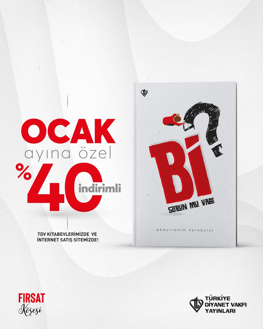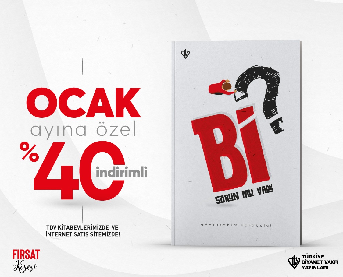 Gençlik kitapları, çocuk kitapları ve hediyelik ürünler gibi farklı kategorilerde ilgiyle takip edilen Türkiye Diyanet Vakfı Yayınları bu eser ile İslami kitaplar alanındaki yayınlarına bir yenisini daha eklemiş oluyor. “Bi Sorun mu Var?” kitabını sipariş etmek için TDV e-satış sitesini ve TDV Kitabevlerini ziyaret edebilirsiniz.